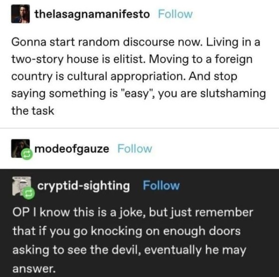 "Wow, this kink is so *weird* and *extreme*" and then you look inside and it's literally just "what if I never had to Be Responsible or Make Good Life Decisions ever again, and somehow this was a sex thing?"