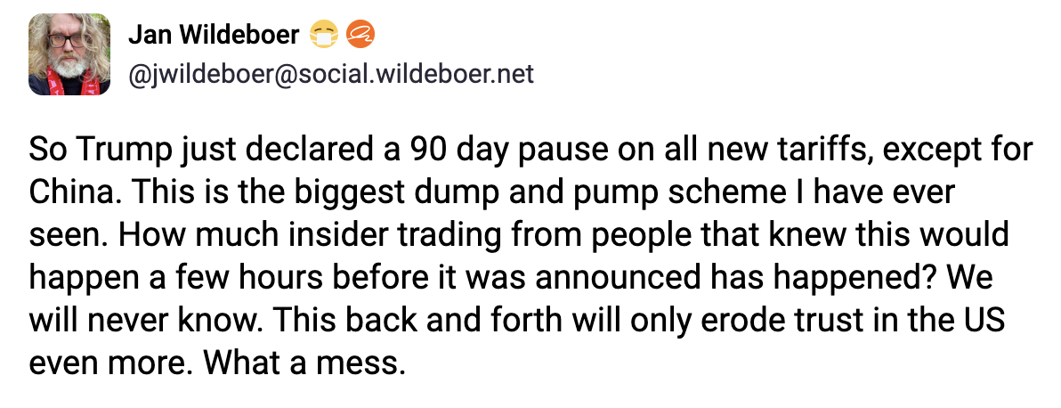 I'm sure Trump fans will say, oh it will increase American manufacturing and will make jobs. This is delusional. Nearly every manufacturing supply chain you can think of has aspects that are hit by these tariffs, and the retribution tariffs we are going to get are going to make it harder for American companies to sell.