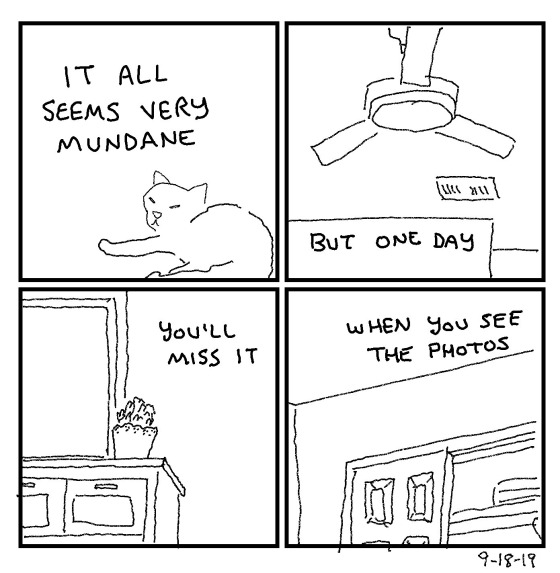 This marks my first daily kind of ritual attempt to record my time in the world. In early 1997 I started jotting more ad hoc notes (a "quote journal"/"common place book") on my Palm Pilot, at the tail end of 2000 I started by daily public blog. And in 2013 I started doing "One Second Everyday" video compilations. (Also later I tried to summarize some of it as highlevel timelines) These are all attempts to leave some wet footprints in the sand as I keep on marching through time.