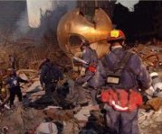 This is the badge my mom, a major in The Salvation Army, was given when she got the VIP-ish tour of Ground Zero the other day. (I suppose it's a little odd that she's smiling for this particular badge photo, but I suppose that's just habit.) She's home from England for a week where she's been working since last summer. For six years, she was the supervisor for many of the Salvation Army employees who are now overseeing the support system for volunteers (she was in NYC during the WTC carbombing), plus she was "visiting from Salvation Army International Headquarters". It also seems like the people working there don't mind visitors so much; they understand that people want to pay respect and bear witness, and also the workers want to keep the message out that amazing work is still going on at the site.And the work is amazing. She told us about the "Taj" (as in Mahal), the enormous tent that is the main meal center for the workers. It's pretty cool how the meals are supplied, actually: because they're trying to support the economy of the area, they pay the local restaurants to make their usual specialty (Chinese, Indian, Sushi, etc) and then volunteers go around and bring the food to the central areas. It's cool how the support structure is working on several fronts like that, and providing the site workers with some variety besides. Also there are the "hydration stations" that offer warmth and soup and beverages. (I hadn't thought about how cold it must be for people who are out there all the time.)