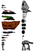 Extremely cool site, Starship Dimensons shows the relative sizes of hundreds of scifi vessels, from X-Wings to various flavors of the Enterprise to the ID4 Mothership. Each page is a different scale, from 10 pixels to a meter to 1 pixel to 2000 meters. Plus, on IE, you can drag the ships to do specific side by side comparisons. (They sometimes bring up the ships from a smaller scale to the higher scale for reference...that's where these tiny Star Wars craft are from.)