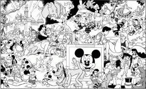 --"Disneyland Memorial Orgy" by Wally Wood. You can see a larger version here. Interesting subversive use of some well known characters.