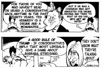 --Gipper, the Talking Points Duck. (Also via Bill) Man, Mallard Fillmore is so bad. And it looks like the Globe added another conservative political shill comic, Prickly City. Clinton jokes, how fresh!