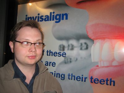 --Me and a sign near Davis Square, on that street with all the Dentists and Churches. That's a whole lot of well-lit mouth to be exposed to when you're walking on the street at night.