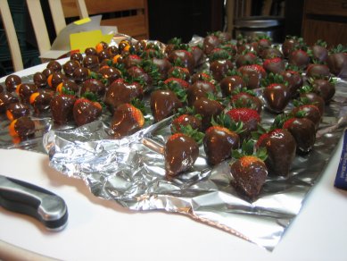 And then last Saturday Ksenia and I made up an army of chocolate covered Strawberries and an auxiliary corps of kumquats for her stepdad's birthday...