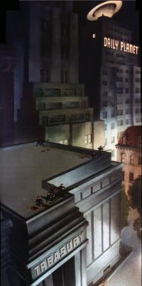 | --This is a reassembled backdrop from an old Fleischer Superman short, via animation treasures 1. The urge to reconstruct this kind of backdrop is so fundamentally geeky, I love it. |