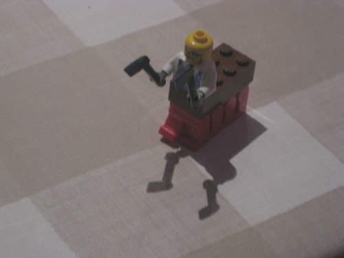 It was cool getting back to building with a small and motley assortment of pieces... my own collection is decent-sized, and sometimes the idea that "a better piece might be in there if I dig enough" can be a bit disheartening. Plus the grabbag had an awful lot of minifig torsos...