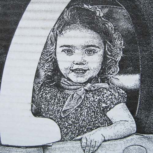 --A few weeks ago I found this totally scary picture on a cardboard box for a child's scoot-around car in EB's backyard. (You can see original picture here -- it still has that Stepford-Wife-in-Training look but isn't quote so Zombie-like.)