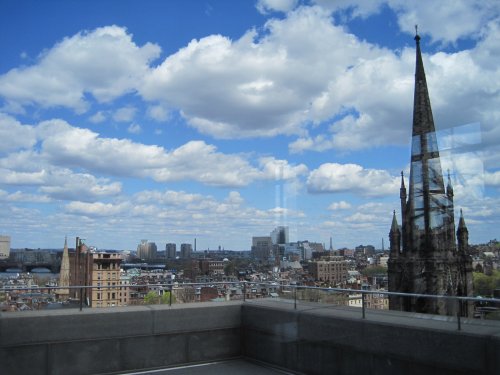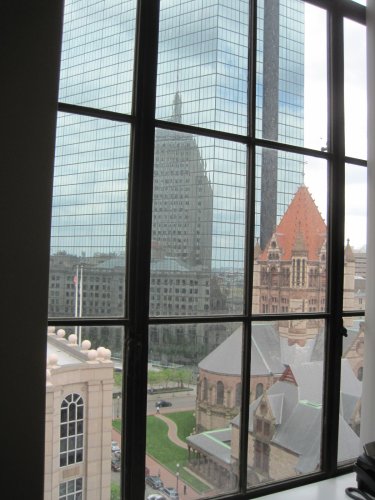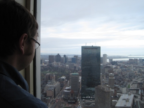 Amber and I went to the Top of the Hub restaurant. Between that and the helicopter lesson she got for me, there's really a theme of catering to my love of high-up views. I realize that taking in the view from the restaurant was a bit of a unique experience in my life... I don't remember ever seeing such a high view of an area that I know so well -- realizing now I've been in Boston about half my life, and then working in the whole greater Copley area for a few years, and planning to do so again.