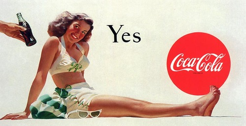 I have two favorite Coke ads. This is one of them. 1946.It reminds me of Yoko Ono's Ceiling Painting, the one that's said she used to woo John Lennon...