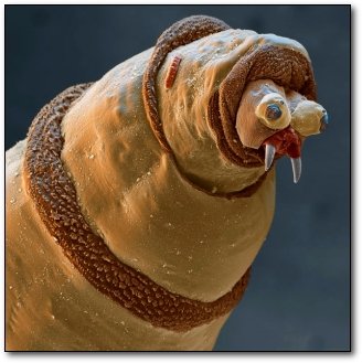 | --Closeup of a maggot, from Cracked.com's 12 Things You'll Wish You'd Never Seen Under a Microscope-- Surprisingly cute! (It didn't even need any photoshopping, unlike my idea for Tiddley, your Tummy Tapeworm Pal |