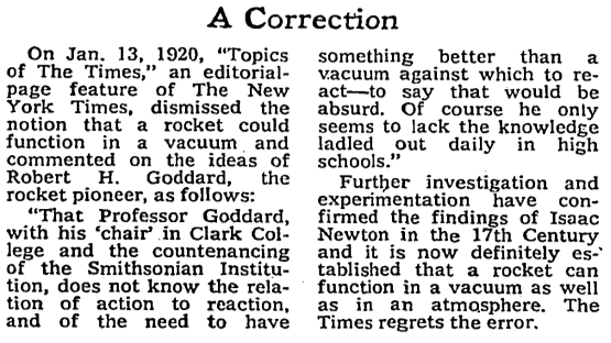 --from the NY Times correction July 17, 1969, right after Apollo 11 launched and a few days before it landed on the moon...via -- regrettheerror seems to be a blog about this kind of thing.