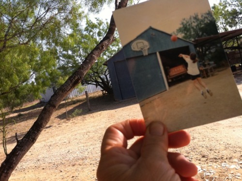 The caption was "I drained 3s all day!"-- the site is Dear Photograph where people overlay an old photograph over the current scene.