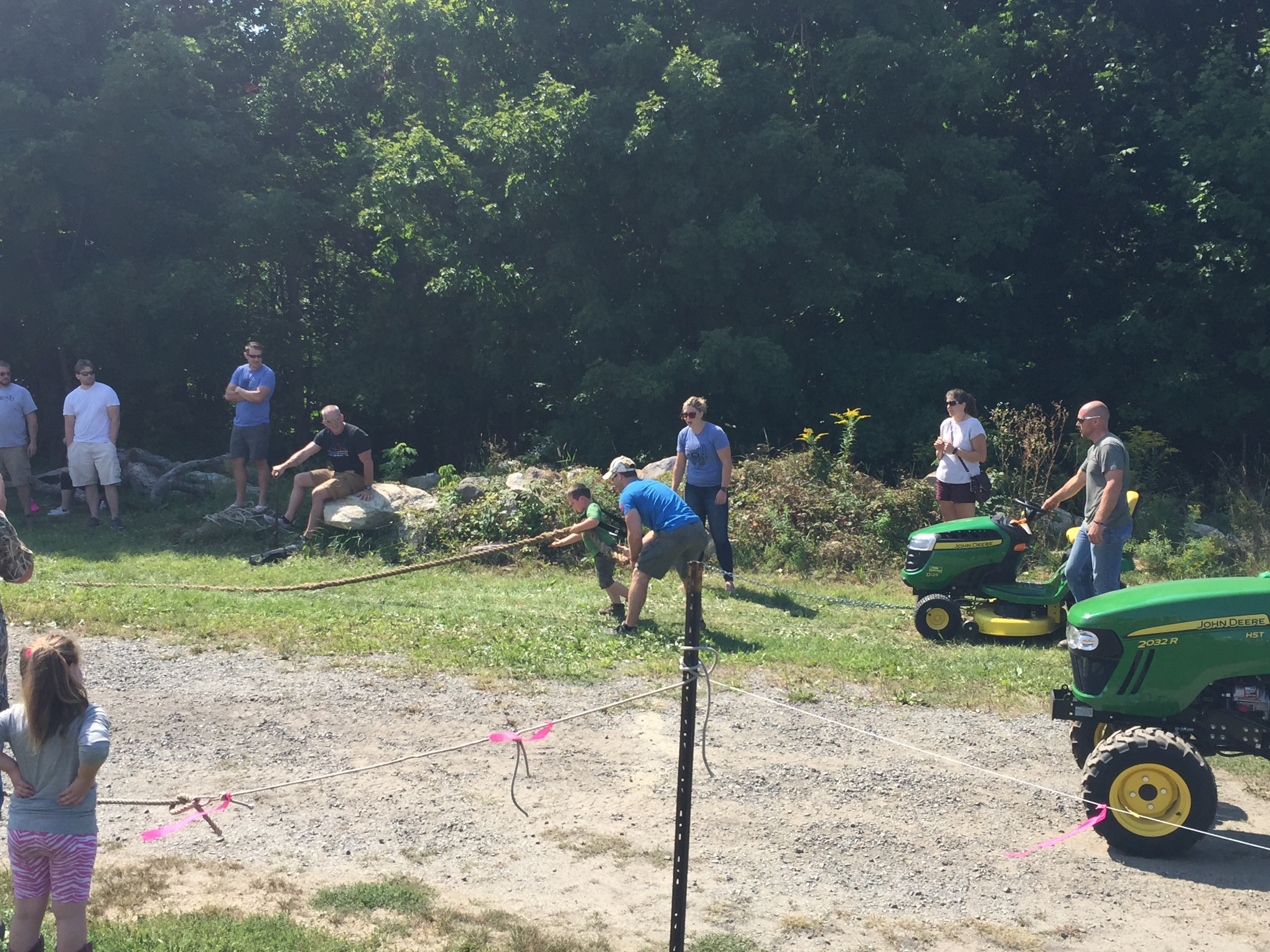 Little boys and girls (like age 6) doing human tractor pull of 440 lb John Deere tractors. #westernMAlife