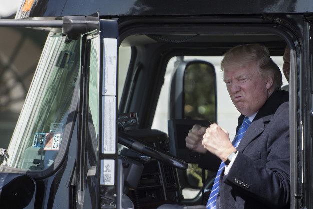 Looks like they're selling physical story books of Trump's big truck day. For a guy so concerned with his tough dude visuals, it's a surprisingly Dukasis-in-a-Tank style scene.