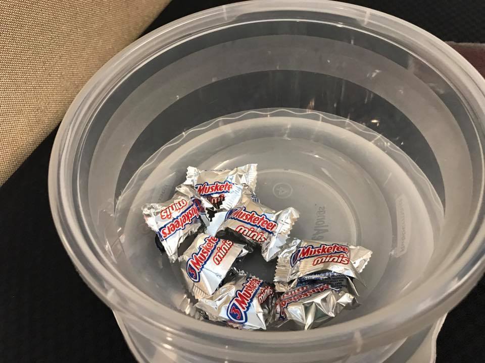 On FB my friend Josh wrote "I brought in a big bag of assorted minis to work last week. This remainder says something..."