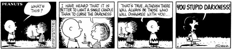 via "You stupid darkness"” and 29 other Peanuts quotes for everyday use