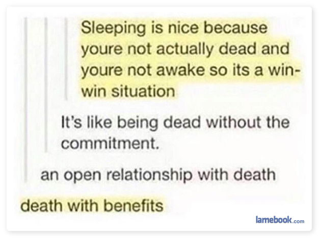 Funny (well, maybe not funny ha-ha) thing to think as you're drifting to sleep: "I'm about to apply for dual citizenship: the United States and the People's Republic of Sleepistan".