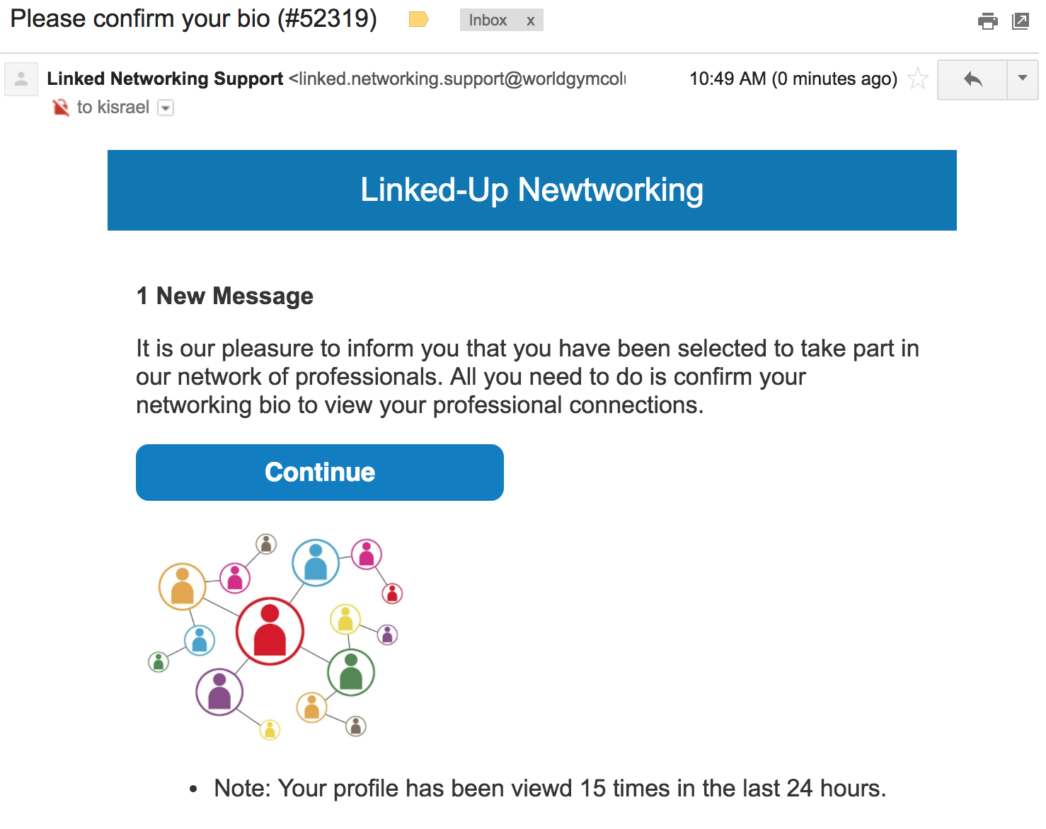 got this bit of phishing from someone who wanted me to be thinking of LinkedIn...