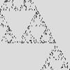I've been revamping some of my old programming toys and games - one of my favorites was this, the "Chaos Game" way of making a Sierpinski Triangle.You pick a point somewhere inside a triangle, mark it, then the next point is halfway between that point and one of the three corners (randomly selected), and then you repeat.