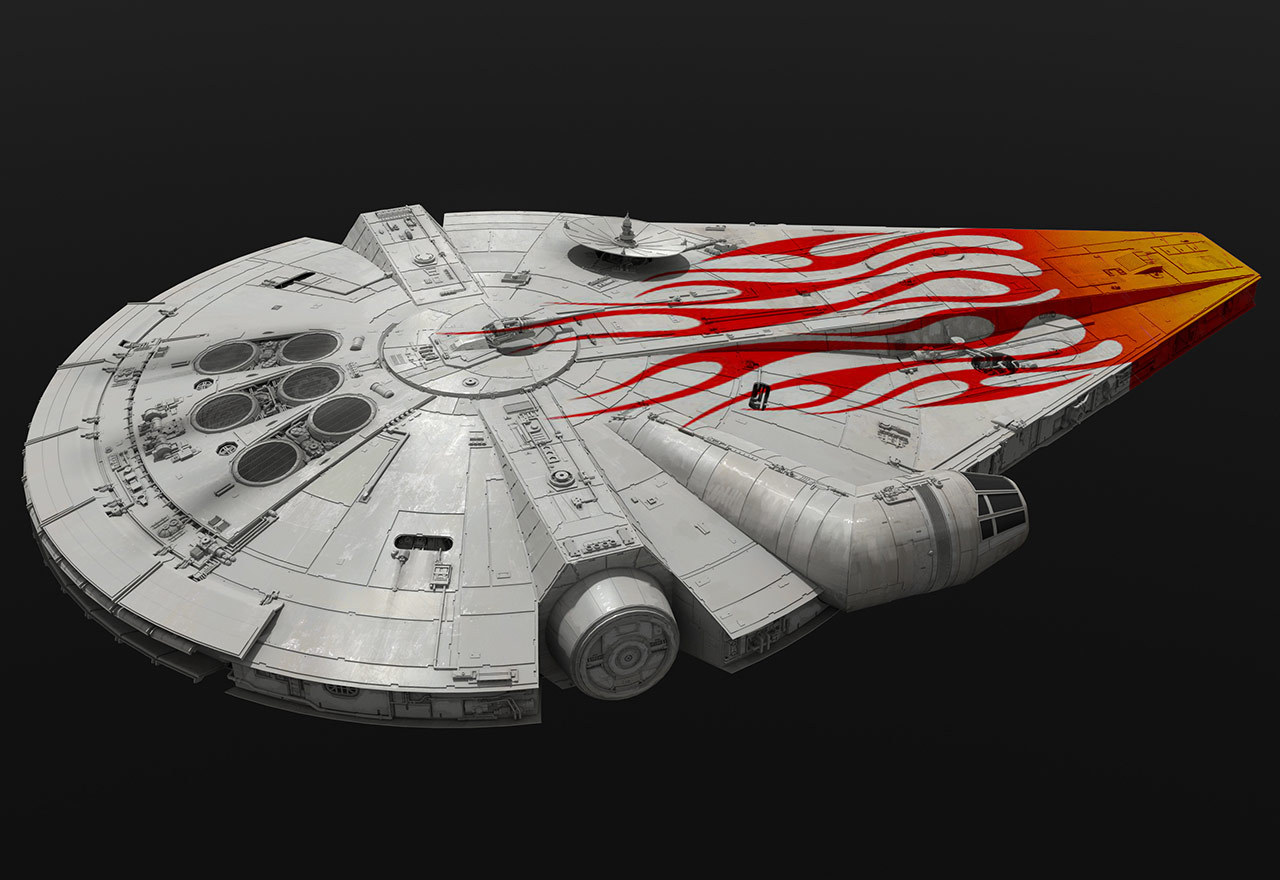 I love the idea of exploring the Falcon used to look, before Han made his modifications or just got it banged up. It was tough for a kid in the 70s or 80s to understand Leia when she asked "You came in that thing? You're braver than I thought", because the Falcon's asymmetrical design just seemed hella cool. The prequels made everything shiny and new looking (though it's hard to know how much of that was just iffy CGI) but still - this was the chance for the designers to show just how cool it used to look.
