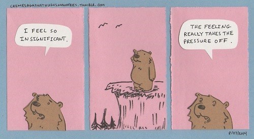 This twitter joke has been stuck with my head for months. If you don't quite get it, see this page (starting with the 3rd panel) about the Watchmen comic most geeks would know it from