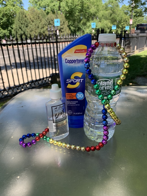 The thee liquids for the Pride brass player: water, sunblock, valve oil