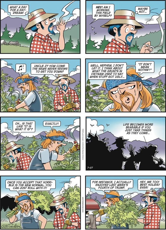 OK, note to self. "Al Capp" did "Li'l Abner" and turned right later and bickered with John and Yoko during their Bed-In for Peace. "Andy Capp" is the English comic strip with the hat-wearing pub guy who's on the packets of "Hot Fries"