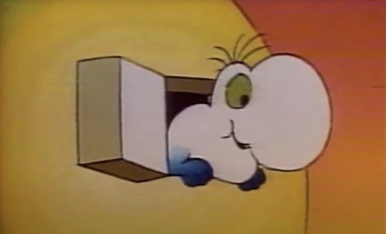 Also here I cued the video to start at an odd cartoon about worms... (I love the device the guy uses in-show to play the clip... back then that was like future wackiness, now it's just any smartphone...) I think the worms were a big influence in how I cartooned for a while, really big nosed characters like from there and from the box art for Nerds candy.