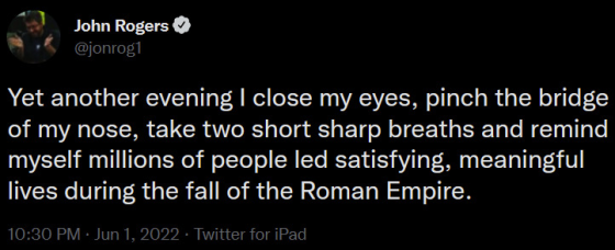 I don't think that every villain in the world actually thinks they're being a good guy, but I do think that everybody creates a value system that justifies the actions they're taking, and and I think there's a difference between those two things. Not everybody believes that they're on the side of righteousness, but everybody has a way of justifying the actions they're taking. Not every villain has to be a misunderstood hero, and in fact I think there are a lot of instances throughout history of people who were obviously doing the wrong thing and probably had an understanding of that on some level, but had some rationale or justification for it. A lot of villains in literature and media have these weird, Thanos-esque philosophies of what it is that they're trying to do, and I think human motivation tends to come from more primal places than that. So a lot of the villains I write can be brilliant or clever (and, in fact, probably should be), but their motivation tends to be primal. They wanna be rich, they wanna have power, they wanna live forever. There's something deep down that is, when you break it down, not too complex. Right? If you look at the real world, the people that are doing bad stuff don't need complex motivations. They wanna rule the world! They wanna be rich! They wanna be unafraid that other people can ever screw them over, so they screw other people over. Evil is boring. Right? I kinda believe in the banality and mundanes of evil. Evil is just selfish impulses, which at the end of the day are really easy to understand. It's easy to understand why people do bad things. It's like "yeah, ok, you're selfish and scared and cruel, I get it". Being good is complex and beautiful and hard.