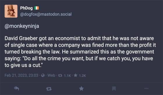 Anyway. I guess "'punishable by a fine' = 'allowed for rich people'" applies to businesses too...