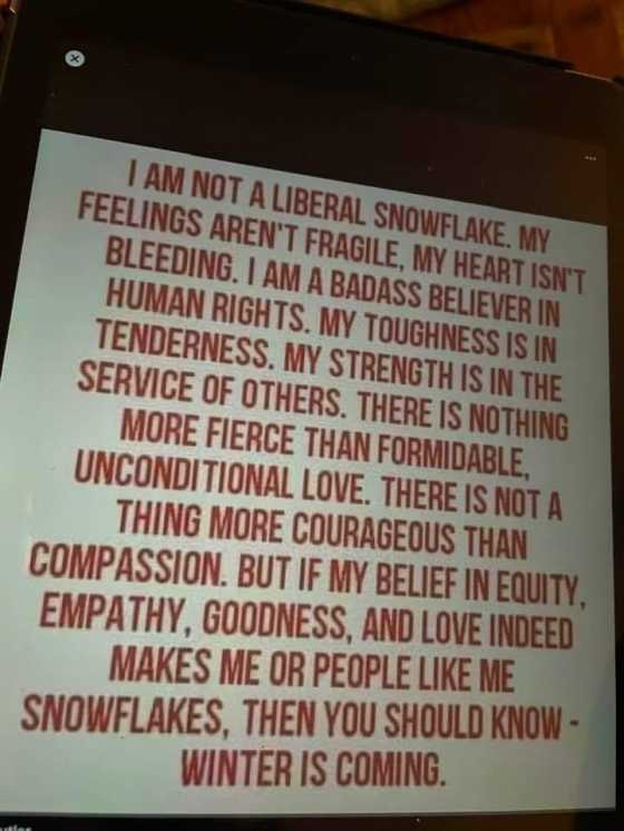 But liberals fight for trans rights because they are the edge of standing up for vulnerable individuals knowing who they are more than the group. Almost all the arguments you have against trans apply to all gay folks. (and in some states they're looking to roll back those rights as well - hey last year it's ok not to sell you a wedding cake. Maybe next year it will be ok not to sell you a house?)