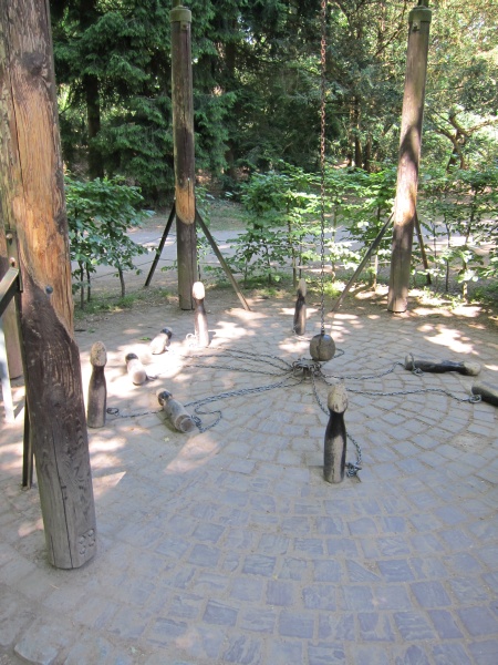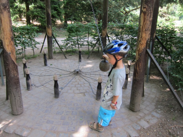 so this is a game, i think called kegelspiel, of knocking down the pins with a heavy ball on a chain. nice satisfying physicality to it!