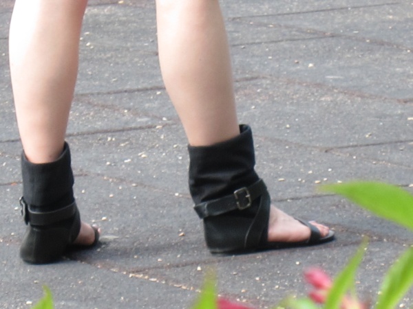 ...what is that on her feet??? sandal boots? odd. veronika says a bit of a new fashion."my feet want to be free but i'm afraid my ankles might get cold"?