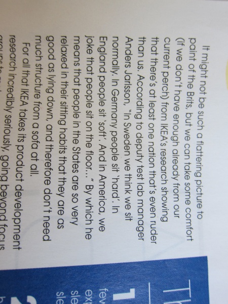 amused by IKEA's description of how different nationalities sit.